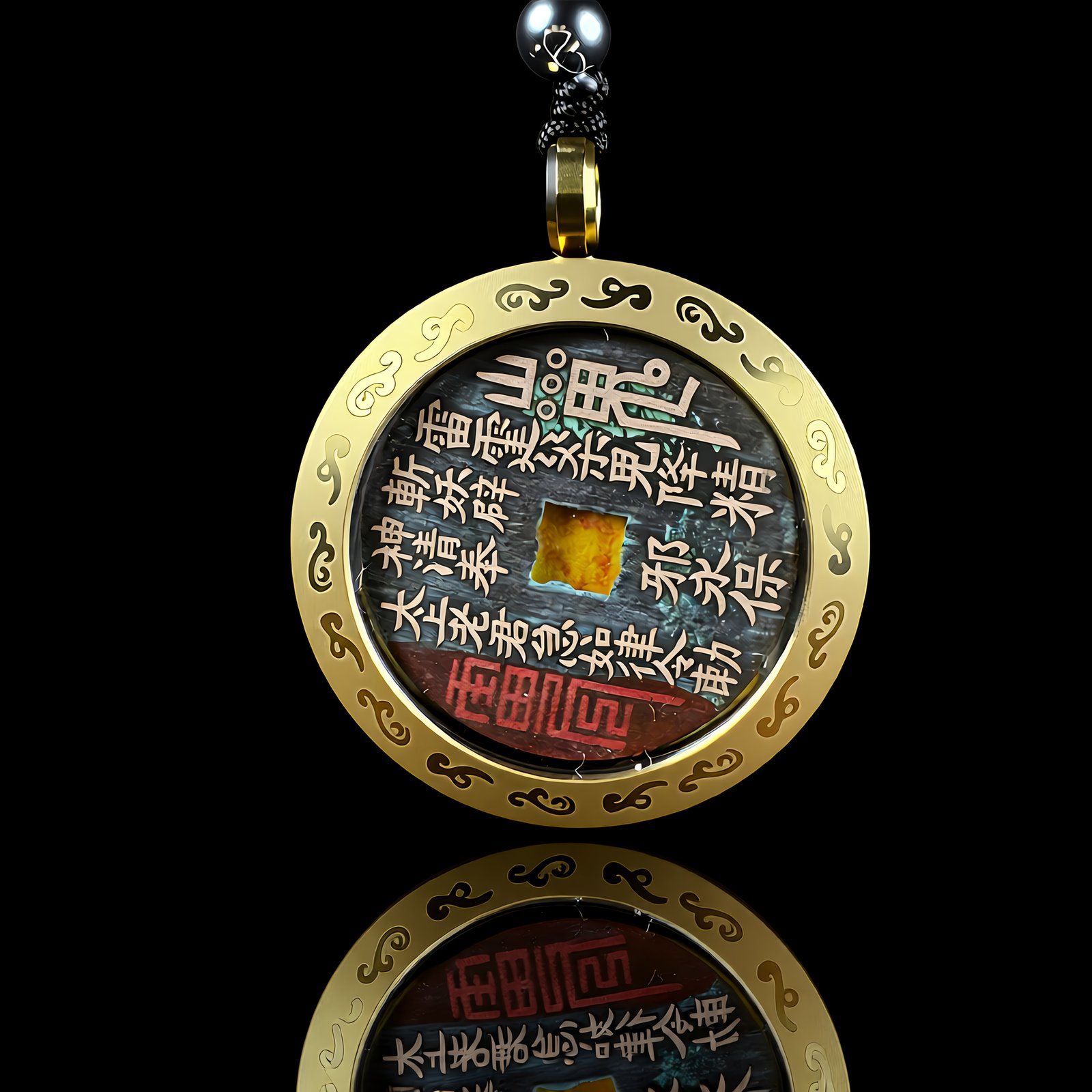 The round edge represents the sky, corresponding to the rising Yang energy in Huainanzi; The square hole in the middle is the earth, carrying heavy energy. The frontal rune replicates the Daozang’s decree of the Supreme Elder Lord and echoes the mountain spirit rune, which is traditionally believed to ward off evil and protect; The brin-rimmed cloud pattern is derived from the Daozang, symbolizing the flow of good fortune and the strengthening of the power to suppress evil, and the fragments of the ancient coin receive the earth energy, forming a closed-loop energy field of heaven, earth and man.
