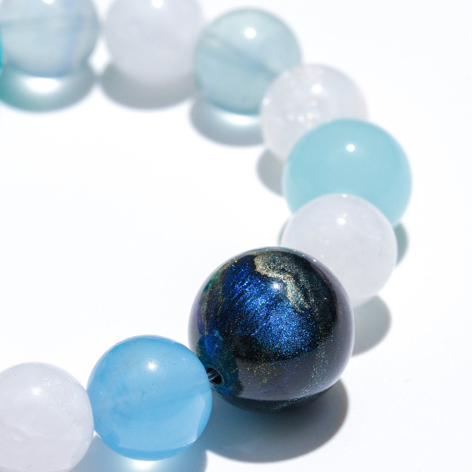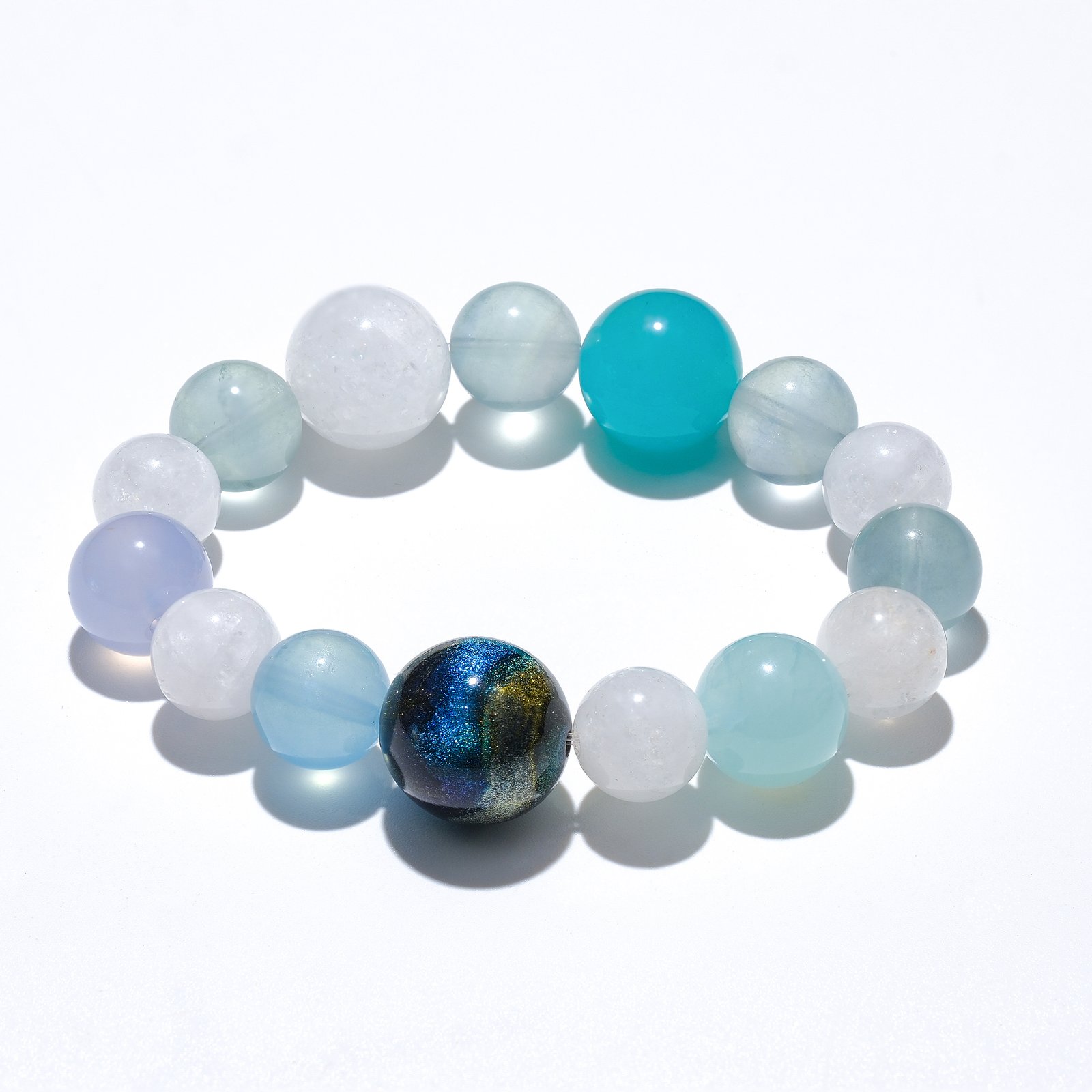 In traditional Chinese culture, it is believed that Tianhe stone can firmly guard the Treasury of wealth; Aquamarine purifies the body and mind; Blue fluorite enhances intuition; Xiuyan jade adds an air of nobility. Four crystals enhance the energy of the water element in the five Elements, echoing the idea that “water governs wisdom and wealth”, and wearing them on a daily basis helps to have a clear mind and smooth fortune.